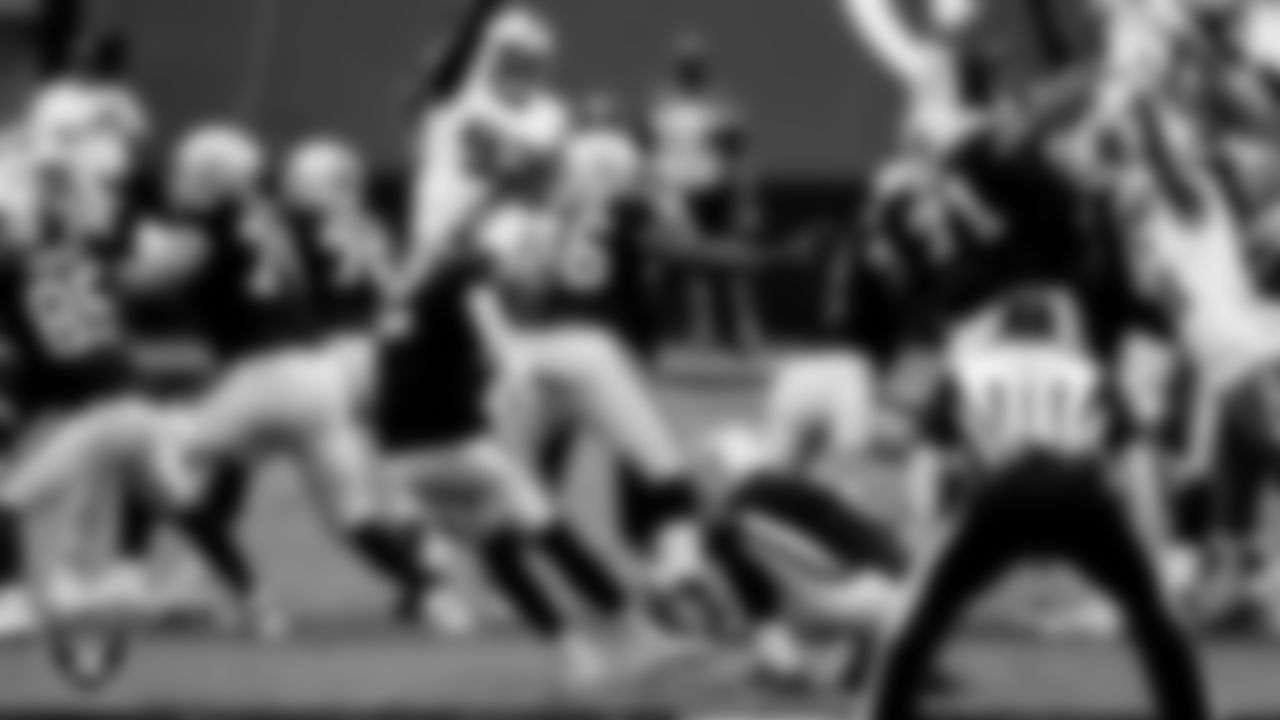 The Las Vegas Raiders special teams unit during the regular season game against the Buffalo Bills at Allegiant Stadium.