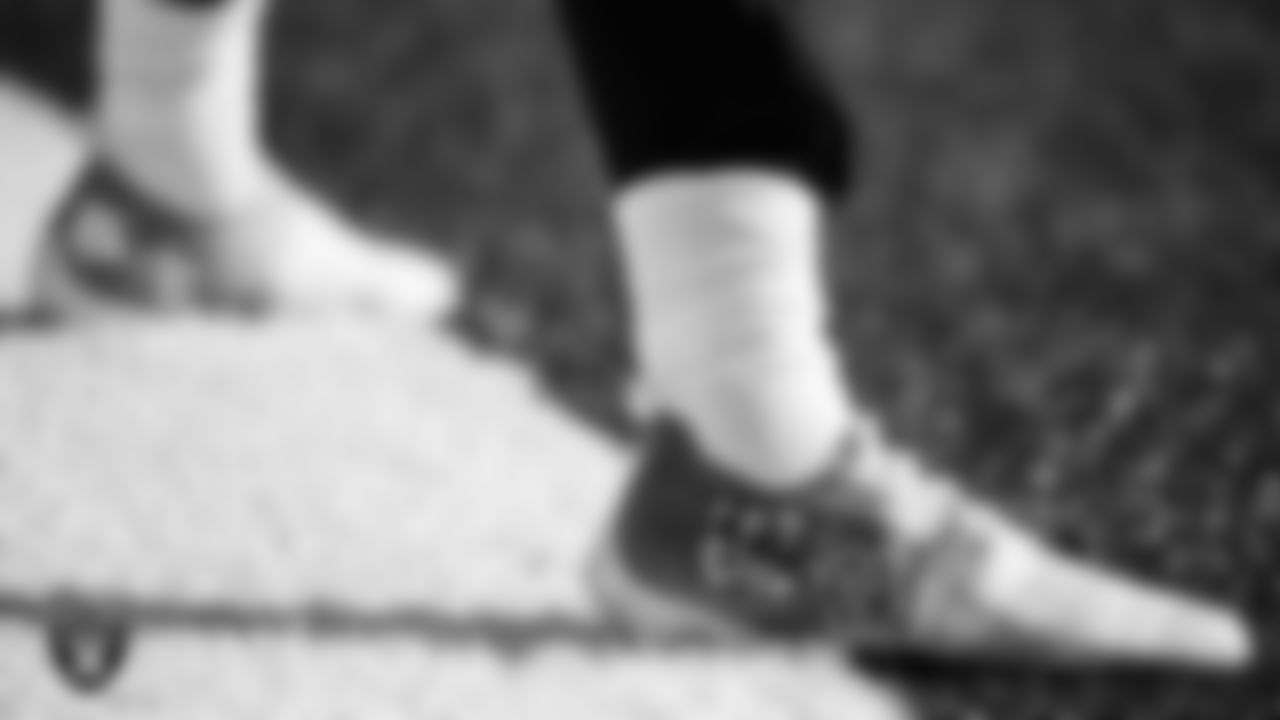 Las Vegas Raiders long snapper Trent Sieg's (47) cleats before the regular season away game against the New York Jets.