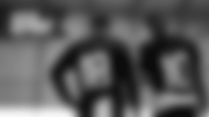 Las Vegas Raiders cornerback Darien Porter (26) and cornerback Decamerion Richardson (25) during the regular season home game against the Tennessee Titans at Allegiant Stadium.