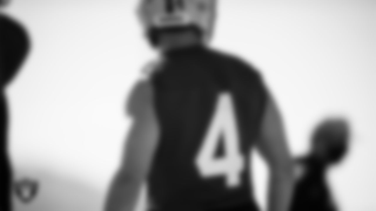 Las Vegas Raiders quarterback Derek Carr (4) during practice.