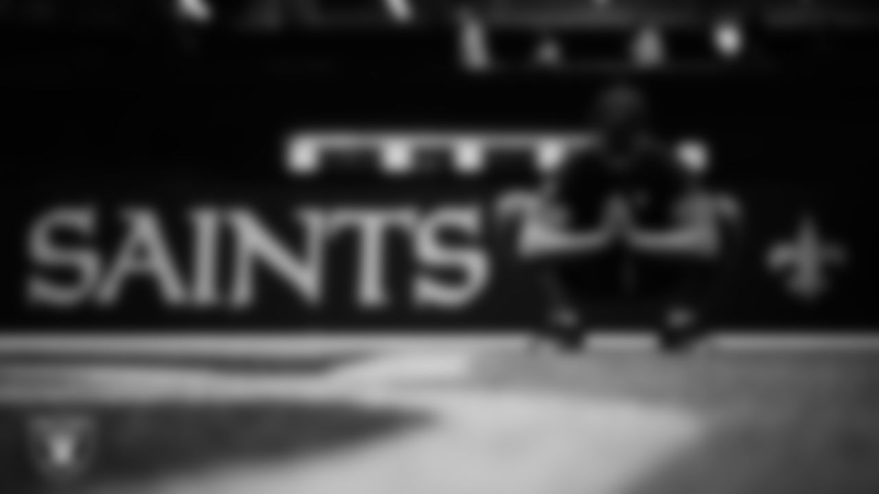 Las Vegas Raiders cornerback Kyu Blu Kelly (36) warming up before the regular season away game against the New Orleans Saints at Caesars Superdome.