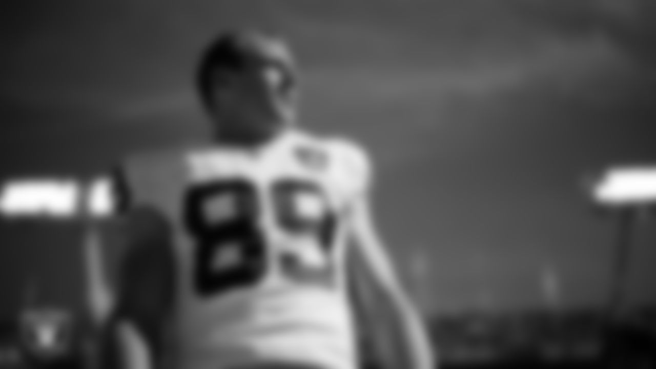 Las Vegas Raiders defensive lineman Adam Butler (69) on the sidelines during the Las Vegas Raiders' preseason home game against the Dallas Cowboys at Allegiant Stadium.