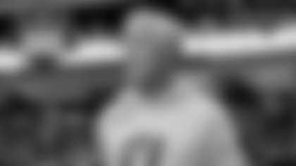 Offensive lineman Khalif Barnes signed autographs for fans at Barons in Dublin, Calif.