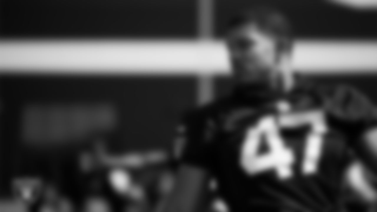 Las Vegas Raiders linebacker Brandon Smith (47) at a workout during phase two of the offseason program at Intermountain Health Performance Center.